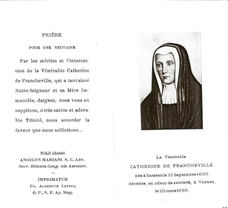 1620 ! La famille de Francheville , propriétaire àbTurscat-en-Sarzeau près de Vannes au bord du golfe du Morbihan donne naissance à une fille : Catherine. À cette époque famine et peste se sont abattues sur la Bretagne ; la tristesse s’est installée dans les villages, à travers les landes dépeuplées et les églises pillées… Catherine vit là jusqu’en 1656…Plusieurs prétendants essaient de conquérir son cœur mais alors qu’elle se dirige vers Rennes pour conclure son mariage, elle rencontre le cortège funèbre de celui, Conseiller au Parlement de Bretagne qui devait être son époux
